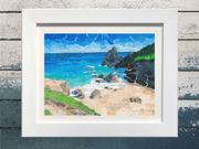 Kynance Cove, Cornwall, Paper Collage Art Print.