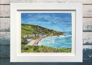 A recycled paper collage print of Portholland, The Roseland, Cornwall, all made entirely from ripped up old magazines and junk mail. I call this print ‘Portholland’.