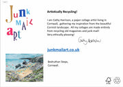 A printed paper collage Christmas card with a brown Kraft envelope. A collage of the beautiful Bedruthan Steps, on the north coast of Cornwall. The message inside the card reads ‘Christmas Wishes’.