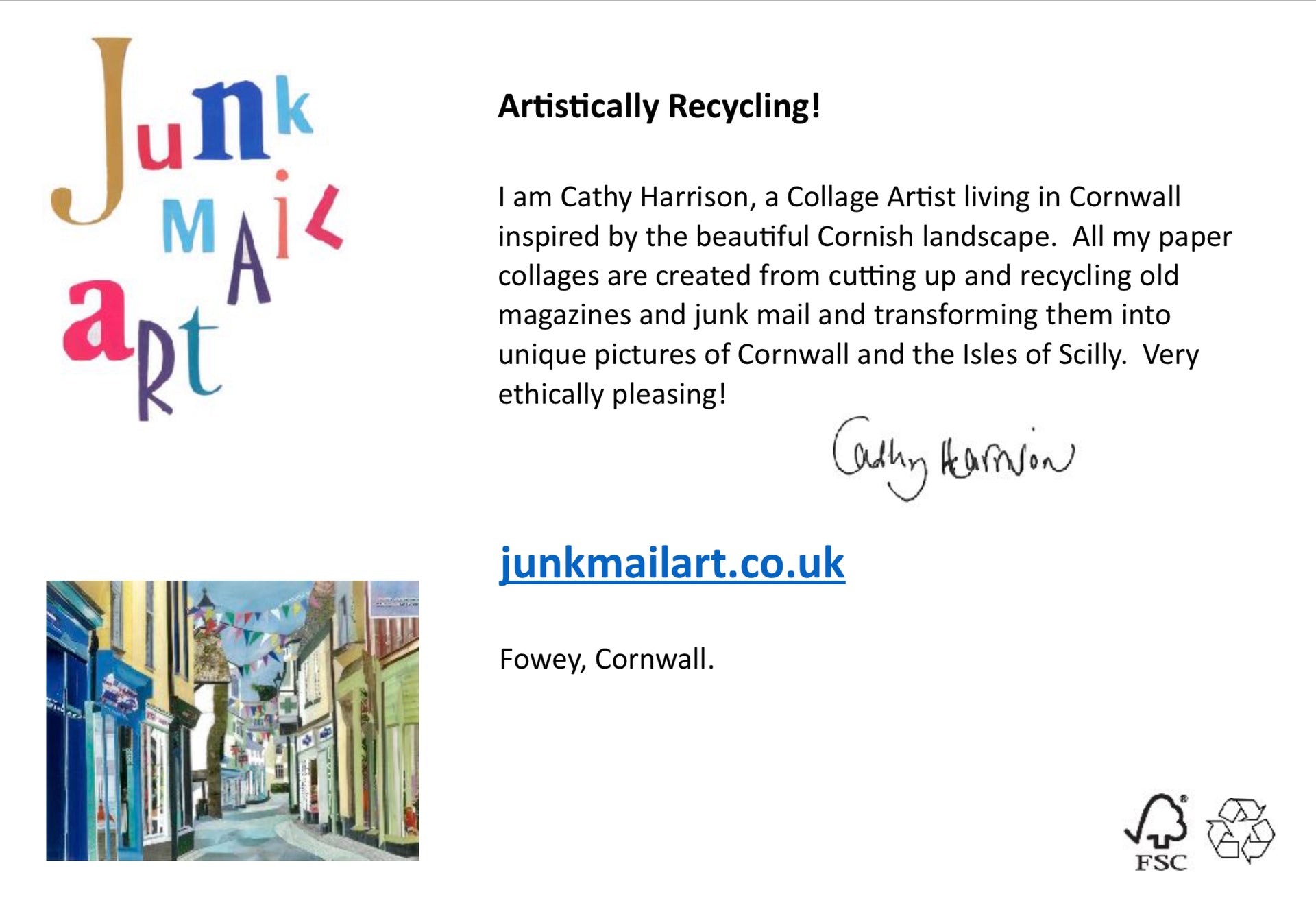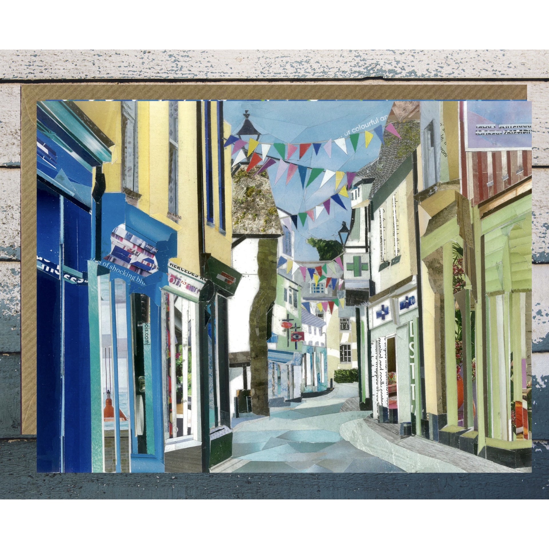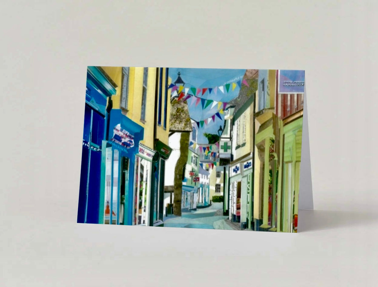Discover our 5”x7” Fowey card, featuring a unique paper collage of Fore Street by Cathy Harrison. Printed on premium FSC-certified matte paper, this card ensures quality and sustainability. Perfect for any occasion, add a personal touch with a handwritten message. Enjoy fast, eco-friendly delivery.