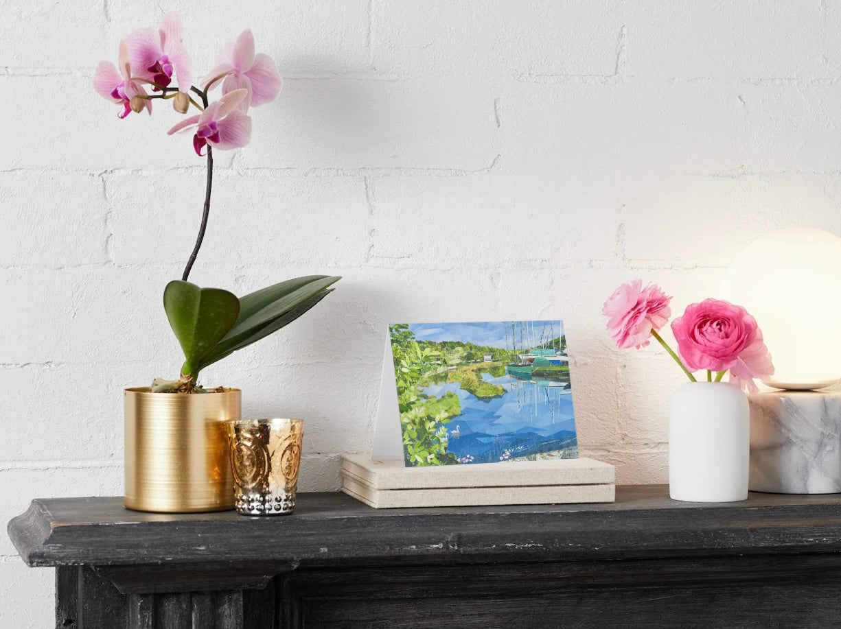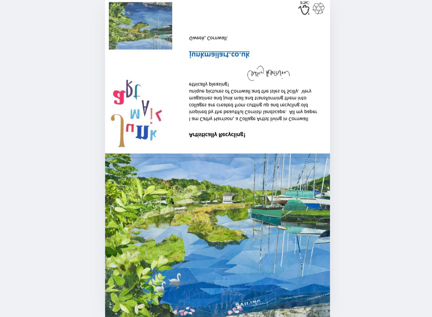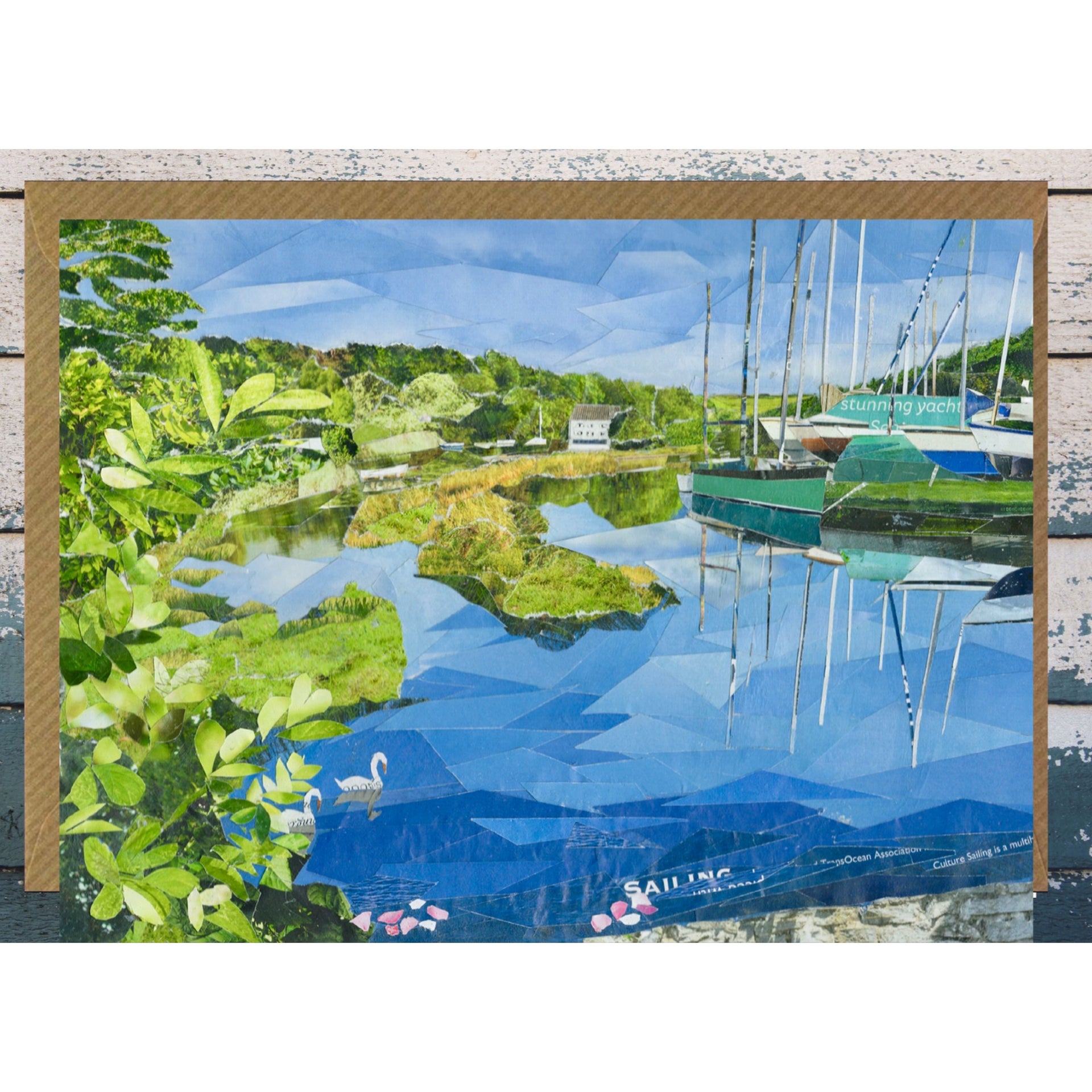 Discover our 5”x7” Gweek card, featuring a unique paper collage of Gweek, Helford River by Cathy Harrison. Printed on premium FSC-certified matte paper, this card ensures quality and sustainability. Perfect for any occasion, add a personal touch with a handwritten message. Enjoy fast, eco-friendly delivery.