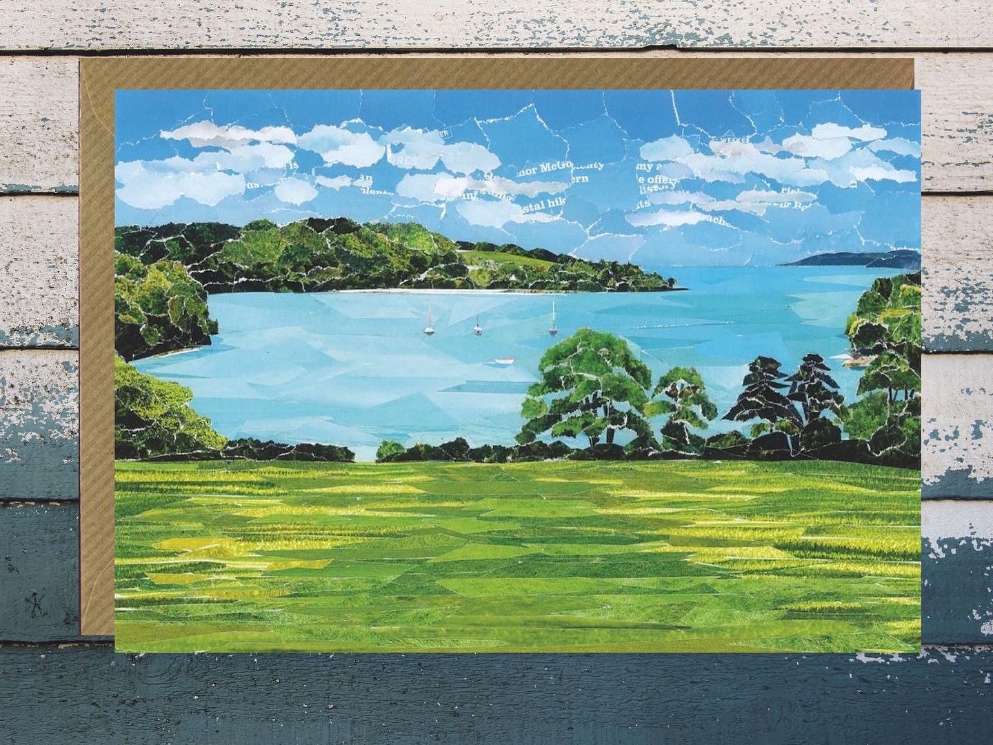 Discover our 5”x7” Trelissick Gardens card, featuring a unique paper collage by Cathy Harrison. Printed on premium FSC-certified matte paper, this card ensures quality and sustainability. Perfect for any occasion, add a personal touch with a handwritten message. Enjoy fast, eco-friendly delivery.