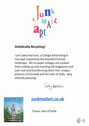 Discover our 5”x7” Tresco Gardens, Isles of Scilly card, featuring a unique paper collage by Cathy Harrison. Printed on premium FSC-certified matte paper, this card ensures quality and sustainability. Perfect for any occasion, add a personal touch with a handwritten message. Enjoy fast, eco-friendly delivery.