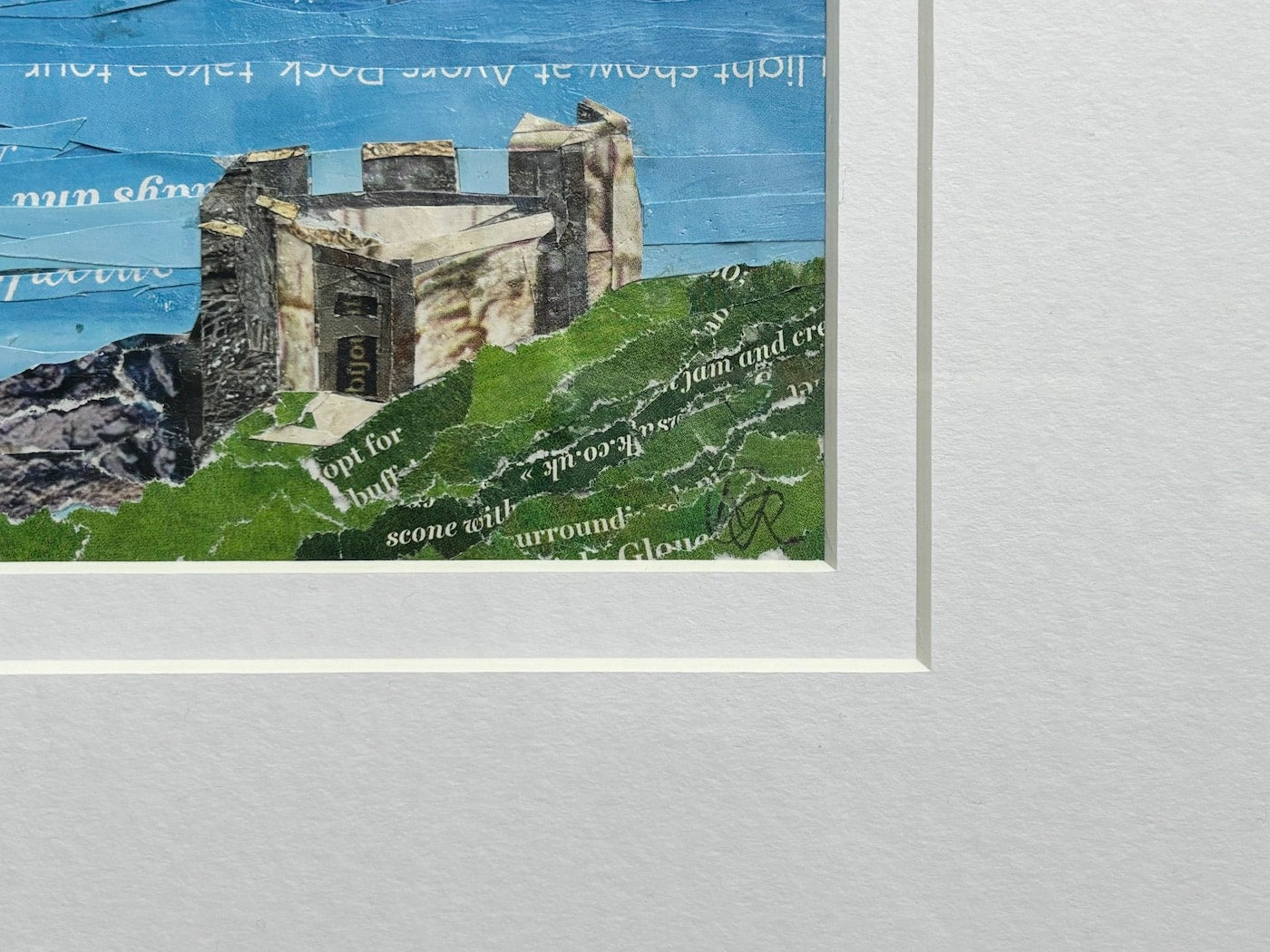 Experience the captivating view from Falmouth to St Anthony’s Lighthouse with Cathy Harrison's original paper collage, available exclusively at Junk Mail Art. This unique piece, crafted from upcycled magazines, beautifully captures the scenic charm of Cornwall. Measuring 8" x 6.5" and framed in a bespoke 16" x 14.5" white wooden frame, this eco-friendly artwork combines sustainability with artistic excellence. Perfect for eco-conscious art lovers and collectors, it reflects both creativity and environmental responsibility. Enhance your collection with this distinctive and sustainable piece, celebrating the natural beauty of Falmouth.