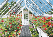 The paper is torn, cut and glued to create an impressionist picture of this beautiful Greenhouse!