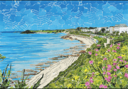 A recycled paper collage print of Castle Beach, Falmouth, Cornwall, all made entirely from ripped up old magazines and junk mail. I call this print ‘Castle Beach’.