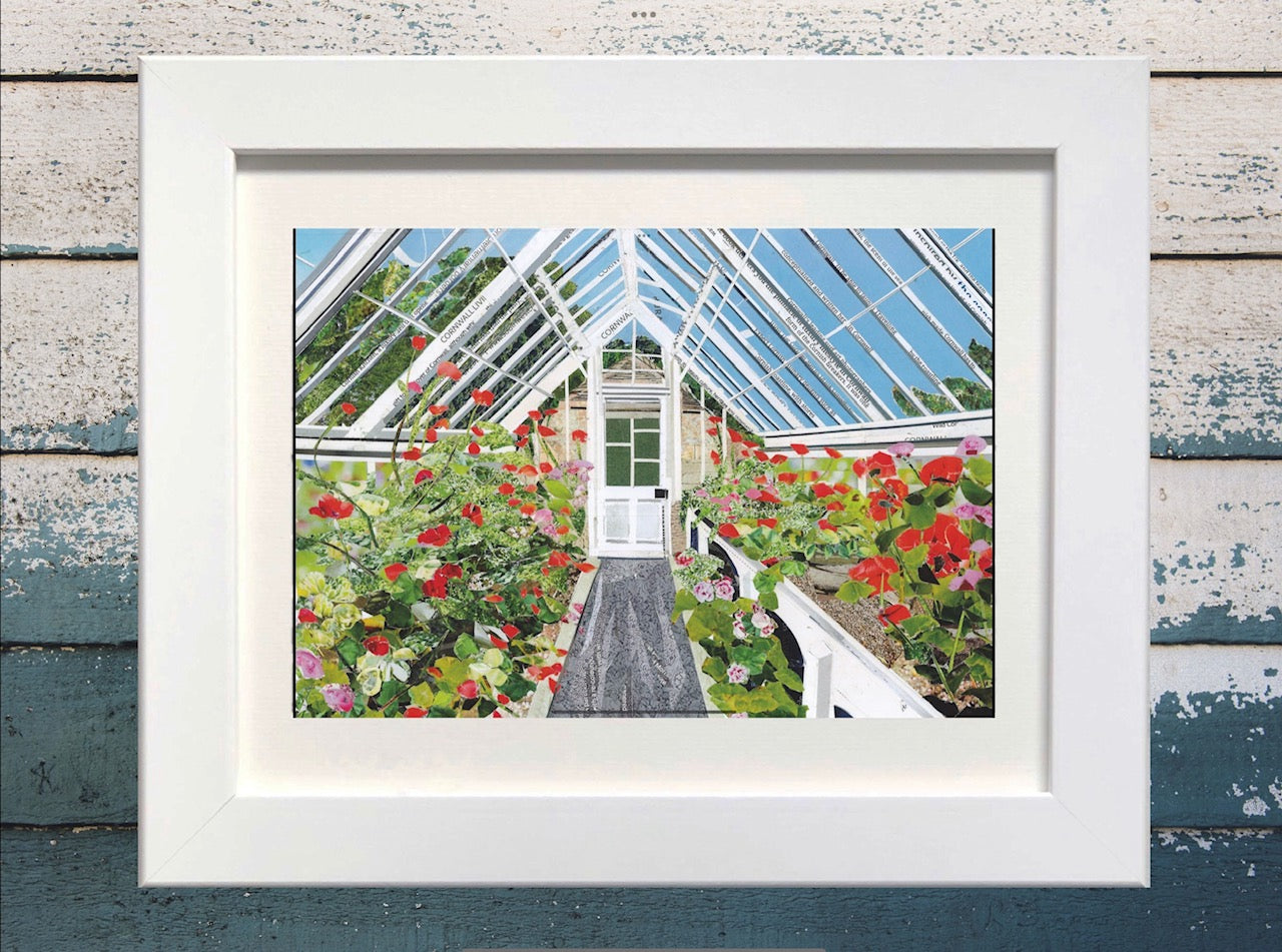 Heligan Gardens Greenhouse Paper Collage Print.