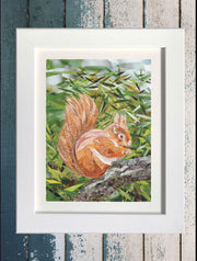 Immerse yourself in the Enchanting Beauty of the Red Squirrel, Tresco Gardens, Isles of Scilly with this paper collage print. Cathy Harrison skilfully blends various paper textures and hues, bringing to life this picturesque Squirrel.