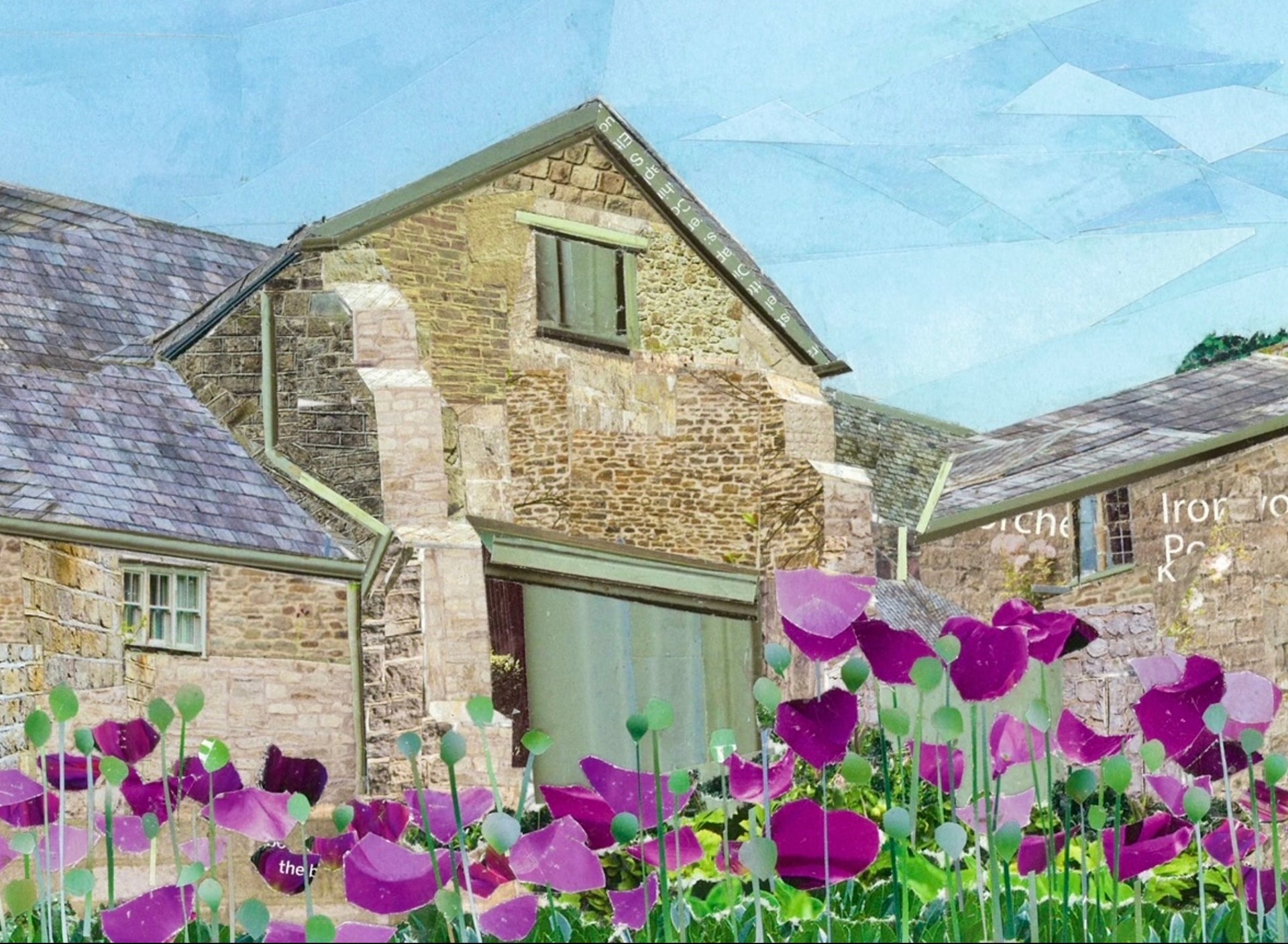 Trerice House Barns, Newquay, Cornwall, Collage Art Print